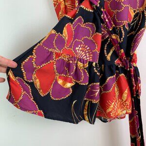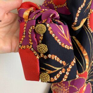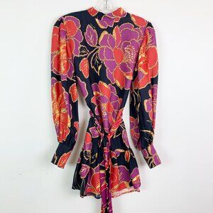 Farm Rio Shiny Chita Long Sleeve Satin Mini Dress Size XS