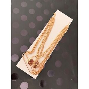Gold Layered Chain Necklace Padlock Dice Safety Pin Punk Statement Jewelry