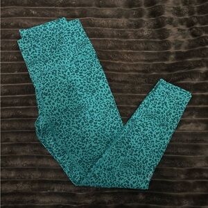 Stylish teal leggings with leopard print. Perfect for workouts or casual wear. Comfortable and stretchy fabric.