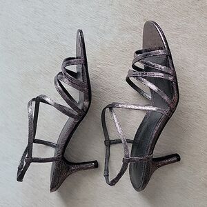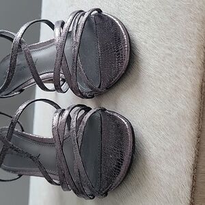 Cute strappy Lulu Townsend heels in a size 6M. These are in a metallic titanium color. The heel is about 2.5" in height. EUC. Hardly worn.