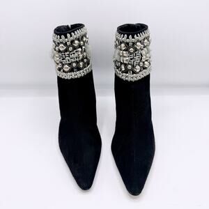 Manolo Blahnik Suede Embellished Boot in Black (Size 40)