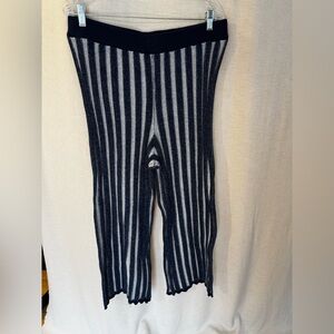 Brand new with tags bold beachy Free-est Miller sweater set featuring an oversized V-neck collared knit top with dolman sleeves and matching high-rise pull-on cropped wide-leg pants in contrasting navy, blue, and cream stripes… effortless coastal lounge vibes, soft textured cotton knit, never worn pristine condition. Size XL.