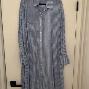 Chic blue striped dress by Zara. Button-down style. Perfect for casual outings.