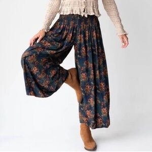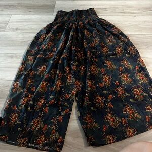 Embrace comfort and style with these floral wide-leg pants. Perfect for any casual outing, these pants feature a beautiful blend of colors that add a touch of elegance to your wardrobe. Size XS, but it runs large and fits like a S
