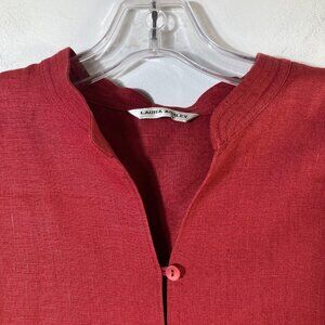 Womens Vintage Laura Ashley V Neck Linen Button Tunic 3/4 Sleeve XL Red