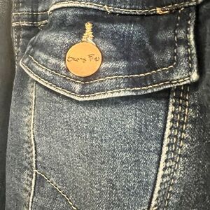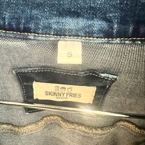 The jacket boasts a short length that complements the long sleeves, providing a balanced silhouette perfect for varied occasions. Practical elements include a button closure, collared neckline, and convenient pockets, while the regular fit ensures comfort without sacrificing style. With its signature Skinny Fries brand accents, this denim jacket is a versatile piece that effortlessly transitions from day to night.