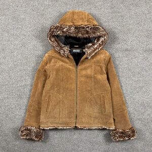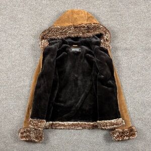 Vintage Canvas Brown Genuine Suede Fur Lined Hooded Full Zip Jacket Women’s XL