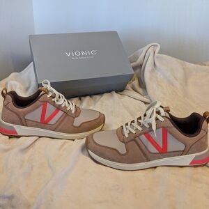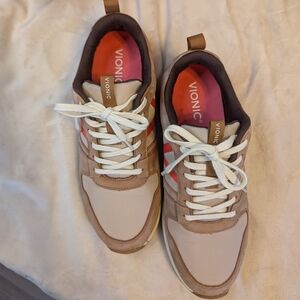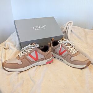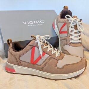 Vionic Women's Rechelle Sneakers Toffee Orange Accent Casual Minimalist Orthotic