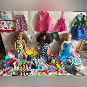 3 American Girl Dolls with accessories