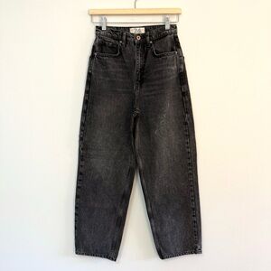 We The Free People Frank Dad Jeans 24 High Rise Straight Wide Leg Ankle Black