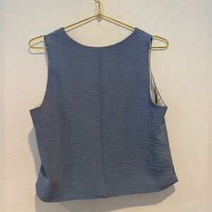 Tullea set with vest and trouser in baby blue. Can be dressed up for work with a pair of heels or dress down with a pair of white sneaker. Totally effortless and chic.