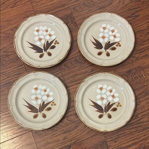 Enhance your dining experience with these vintage floral ceramic plates. Featuring a charming cream and brown design, these plates add a touch of elegance to any table setting. Part of the “The Classics” collection. Set of 4. Beautiful set.