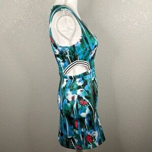 Jealous Tomato Floral Blue & Green V-Neck Cut Out Mini Dress Size Small