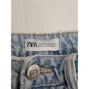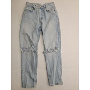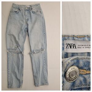 Zara Jeans Womens SZ 2 Slim Straight High Rise Distressed Rigid Light Wash