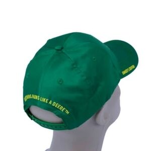 Stylish green hat with iconic logo. Perfect for casual wear. Show your love for John Deere. Elevate your style with the John Deere Owners Edition Green Cloth Cap. Perfect for any casual outing.