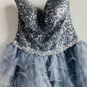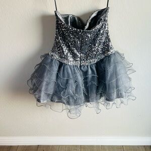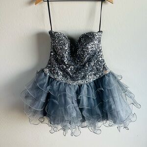 Vintage Cindy’s USA Gray Silver Sequin Formal 90s Mini Dress Glam Party Sparkly