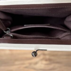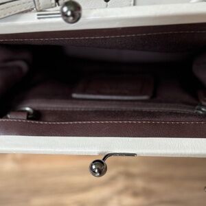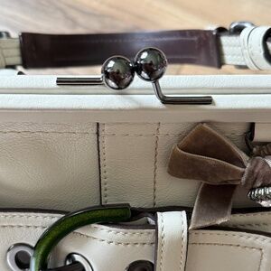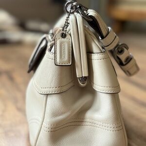 Very Good Used Condition - Coach Soho Kisslock Frame Satchel Handbag - 8A12. I am the original owner of this bag. I used it a few times, but haven't used it in years and would like someone to have it who would use it and appreciate it more. There is some minor wear from use on the outside, nothing major, and the inside is clean like new. The last few pics are examples of the outside wear. Everything is fully intact and original to when I purchased.