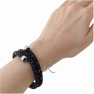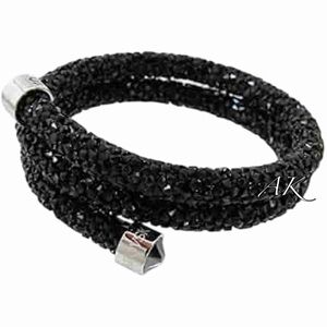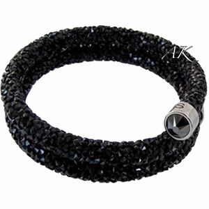 Swarovski Black Crystaldust Double Bangle Bracelet with Silver Accents Crystal