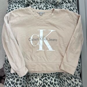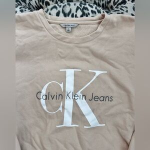calvin klein beige fleece crewneck sweater