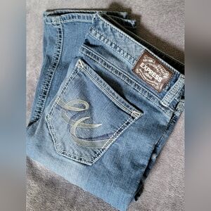 Details: Features a "Reliable Quality Original Express Jeans" leather-like patch on the back waistband.