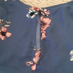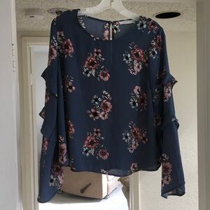 LUSH/SLATE BLUEwPINK ROSES 2 TIERED RUFFLE SLEEVES/NEW
