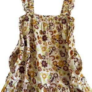 Lush Fall Retro Floral Print Ruffle Tiered Mini Dress Frock Women’s Size Small