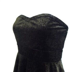 Free People Black Velour Dress Metallic Silver Strapless Sweetheart Pockets M