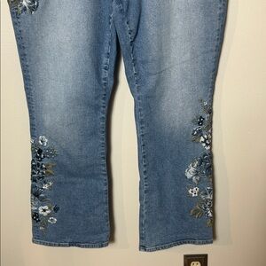 Driftwood Kelly bootcut embroidered blue floral Blue Fleurs jeans EUC, Size 22. Good, preloved condition!