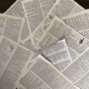 Torn out large sections of various maps, dictionary pages music sheets and loose leaf grid papers (these are the only one not vintage)
