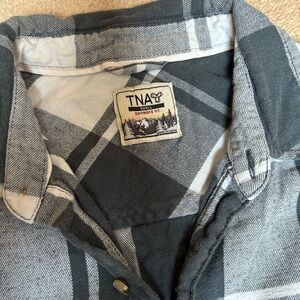 Chic checkered shirt by TNA. Features a classic collar and button closure.