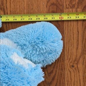Huge blue and white plush bunny, Excellent condition this giant bunny lays at approximately 32 inches long. Super soft and cuddly, this delightful blue bunny plush is perfect for Easter or everyday love and snuggles.