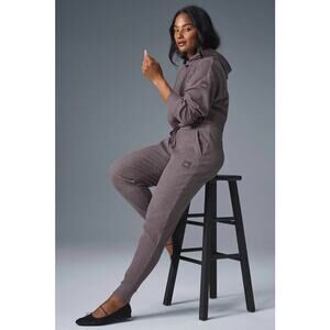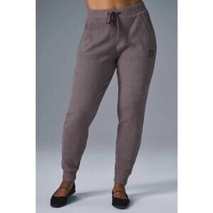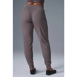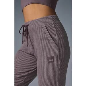 Alo Yoga Muse Ribbed Knit Sweatpants Raisinette Heather Lounge Cozy Minimal Luxe