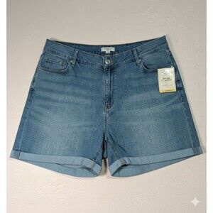 Keywords: Levi Strauss Signature Gold, women's plus size 24, NWT, new with tags, blue denim, light wash, mid-rise, Bermuda shorts, cuffed hem, jean shorts, relaxed fit, straight leg, solid, monochrome, cotton blend, summer, casual, classic, comfortable, everyday, warm weather, Coastal Grandma, Normcore, Summer Casual, Y2K style.