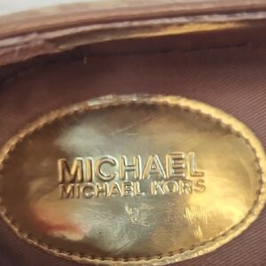 Michael Kors Tan and Brown Logo Slip-On Loafers