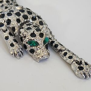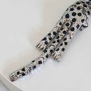 Vintage Silver Articulated Textured Leopard Brooch Pin
