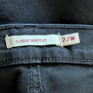 Brand new with tags Levi's classic bootcut jeans in women’s size 22W. These mid-rise black stretch denim jeans offer a flattering fit with comfortable stretch and a timeless bootcut leg—perfect for everyday wear or dressing up.