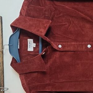 Classic and versatile Julian & Mark men’s stretch corduroy shirt in a rich rust brown tone. Soft feel with a structured look — perfect for fall layering.