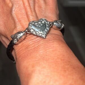 Brighton Black Leather and Silver Heart Cupid Bracelet