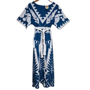 Farm Rio Blue Patchwork Embroidered Dress Size XS