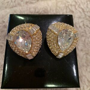 These stunning earrings feature a sparkling gold and silver tone design. Clip on backs. Perfect for adding a touch of elegance to any outfit.