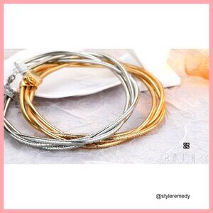 A modern, layered statement piece featuring a multi-wrap design with twisted rope and sleek chain textures. Lightweight and comfortable for all-day wear, it offers a versatile look suitable for both casual and evening styling.