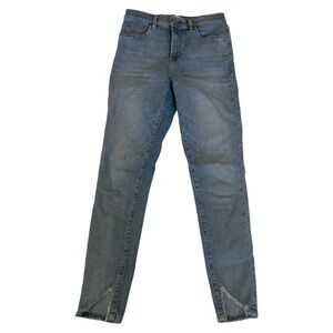 Levi’s 720 high rise super skinny light wash jeans cut in distressed hem