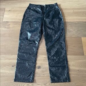 Abercrombie & Fitch 90s Straight Ultra High Rise Navy Vegan Leather Pants Curve Love Size 32/14.