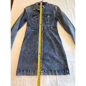 Versona Acid Wash Denim Mini Dress Blue Button Down Long Sleeve XS