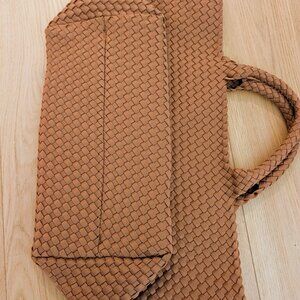 Discover the perfect blend of style and functionality with this elegant tan woven tote bag. Ideal for any occasion, this bag offers ample space and a chic design.