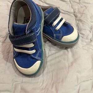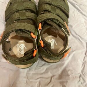 See Kai Run Wilder II sandals in olive green. Size 6. Some discoloration of footbed (see photos) but otherwise excellent used condition.