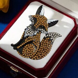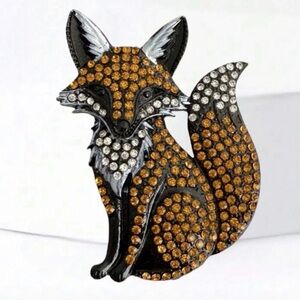 This adorable metal fox brooch adds a touch of elegance to any outfit. Featuring sparkling small tan brown and silver rhinestones, it's perfect 4 animsl lovers and fashion enthusiasts alike