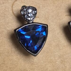 These stunning earrings feature a deep blue spinel gemstone set in a sleek sterling silver marked.