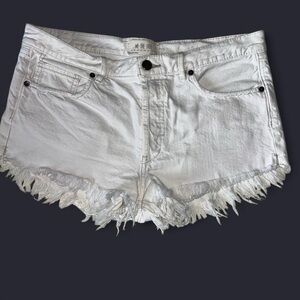 We The Free by Free People White Denim Shorts | Size 30 | Button Fly