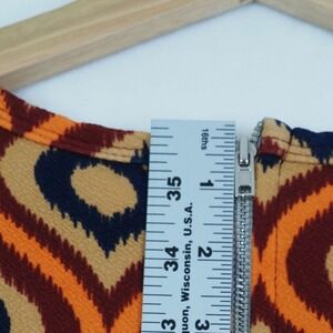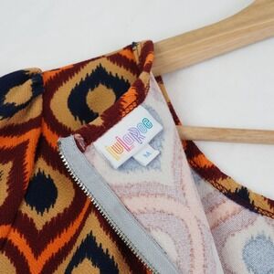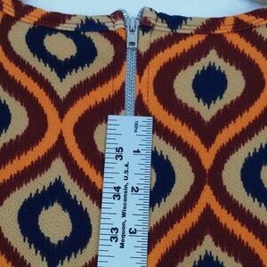 LuluRoe Womens Fit and Flare Dress M Orange Navy Geometric Mod Retro Skater